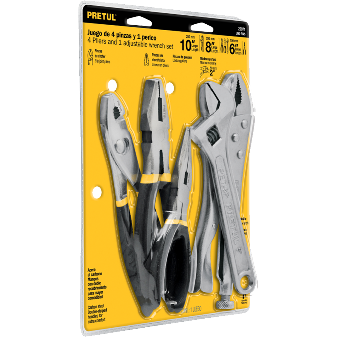 22971 Juego de 4 pinzas y 1 llave ajustable, Pretul
