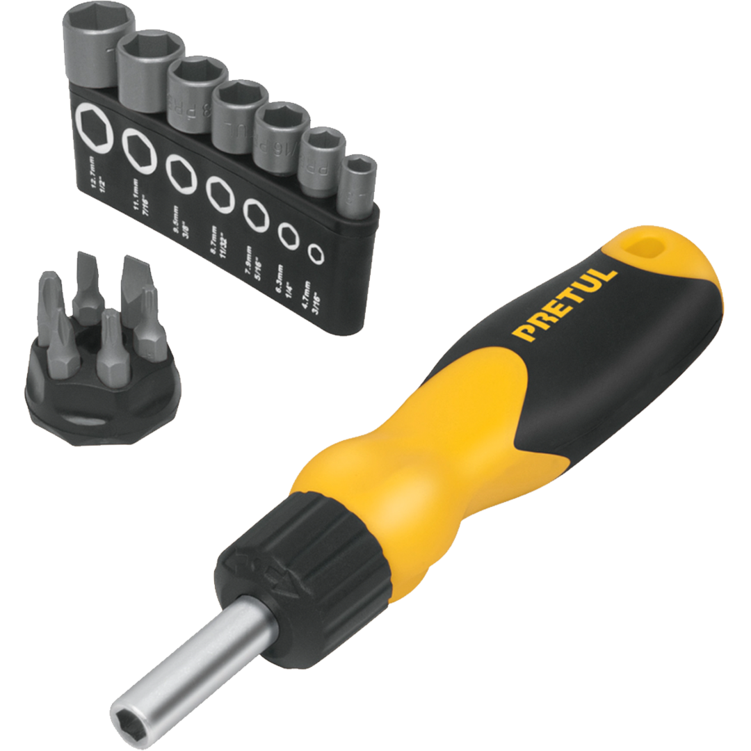 22974 Desarmador tipo matraca con 6 puntas y 7 dados, Pretul