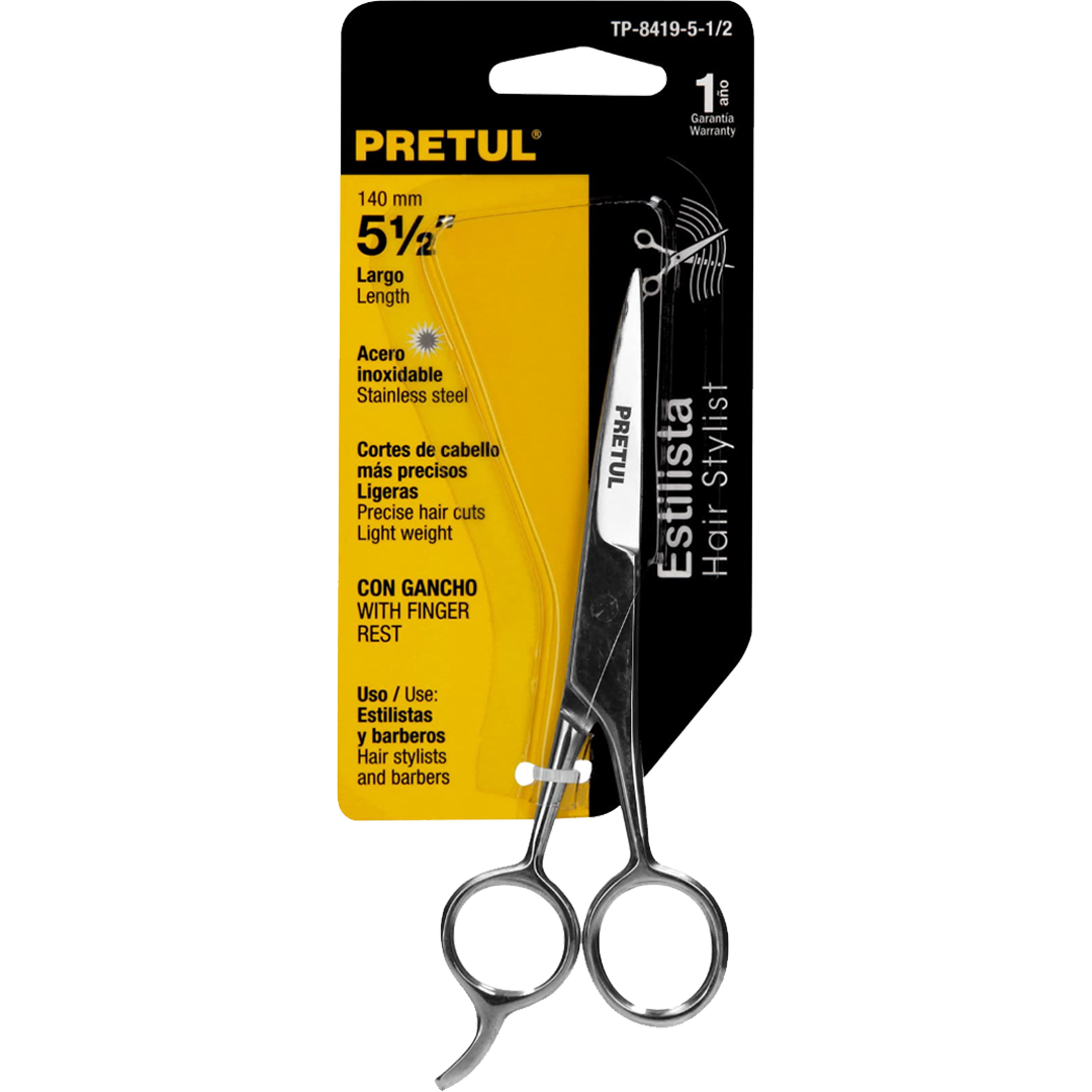 Tijera 5-1/2' acero inox con gancho para estilista, Pretul